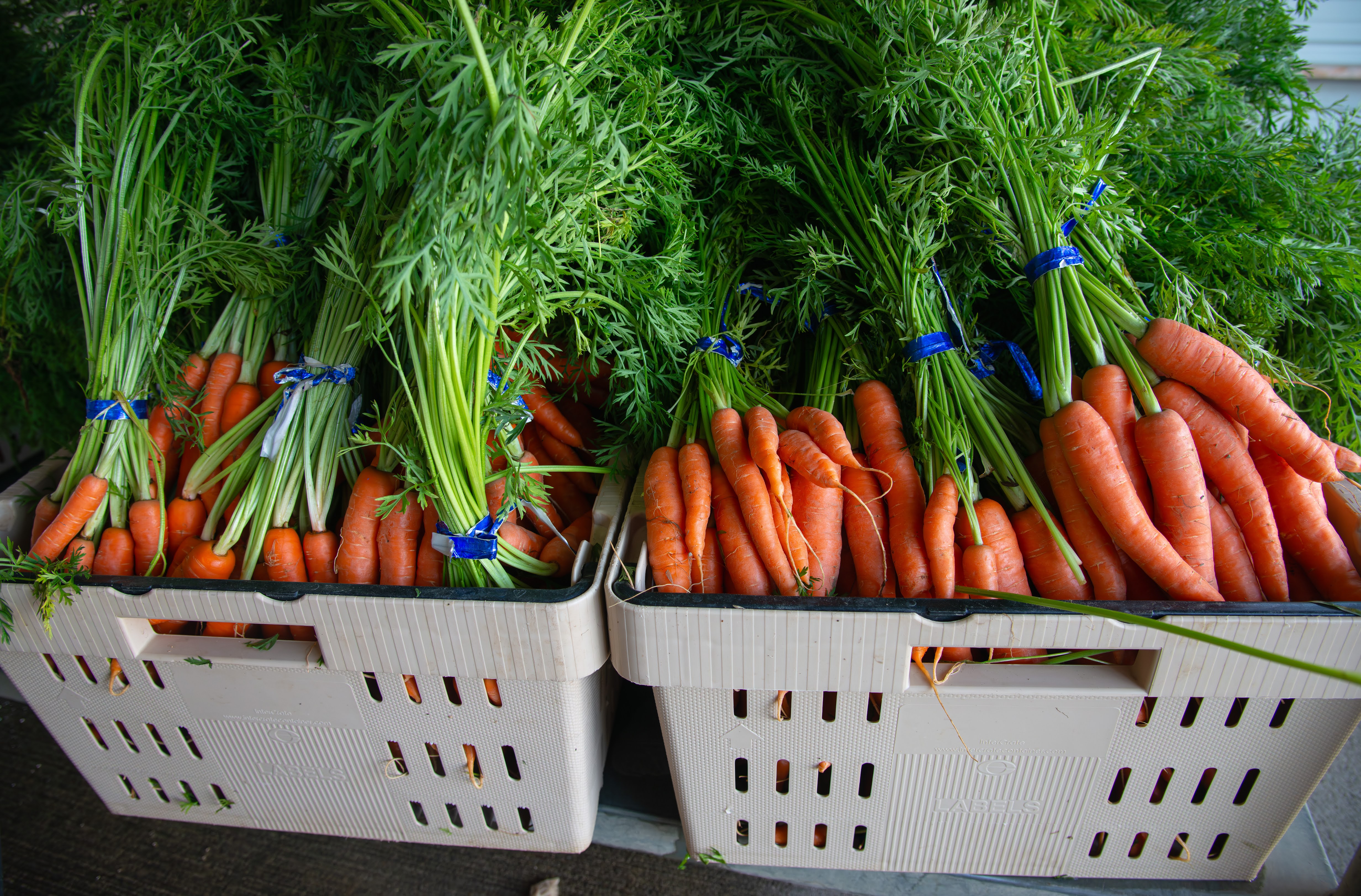 We pack our CSAs in plastic harvest totes. Please bring your own bag to transfer the produce into, and leave the boxes at the pick-up site. Please DO NOT take the harvest totes home with you. Small boxes are green and large boxes are beige.